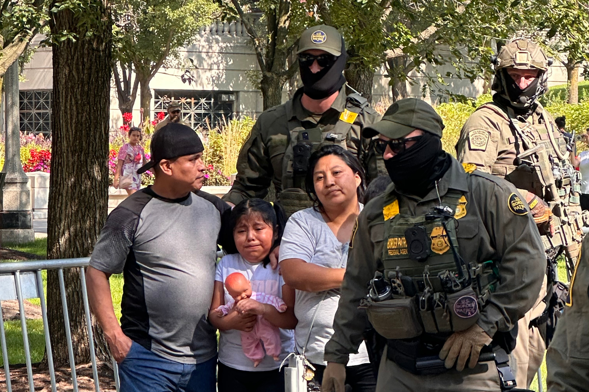 This image stuck with me, it fucked with me. The little girl wanted to go downtown to see some tourist attraction. I can only imagine the parents weighing their options, not wanting to risk it but also not wanting to dissapoint their little girl. Man, look at her holding that fucking doll. She's just a little girl who wanted to go downtown and now they took her dad away from her. I know someone who was deported after living here for years. She was deported when her kids were just 13 and 16. She fought for years trying to come back for them, especially when her husband started dying. She pleaded with immigration for the chance to say bye to her husband. They didn't let her do that, and by the time she came back, her kids were grown adults. They ruined her life and stole so much from her. I hope the little girl doesn't blame herself for what happened to her family. I hope there's someone else who speaks English in that household, because the children of immigrant parents are often translators for their parents, and I can't imagine being in her situation and having to translate to her mother that her dad was taken to Texas for processing and to be deported. Hopefully, this will one day be a memory, but the pain inflicted by all this can never truly go away. Lives have been ruined. No one in my immediate circle has been affected and I still feel traumatized by it.